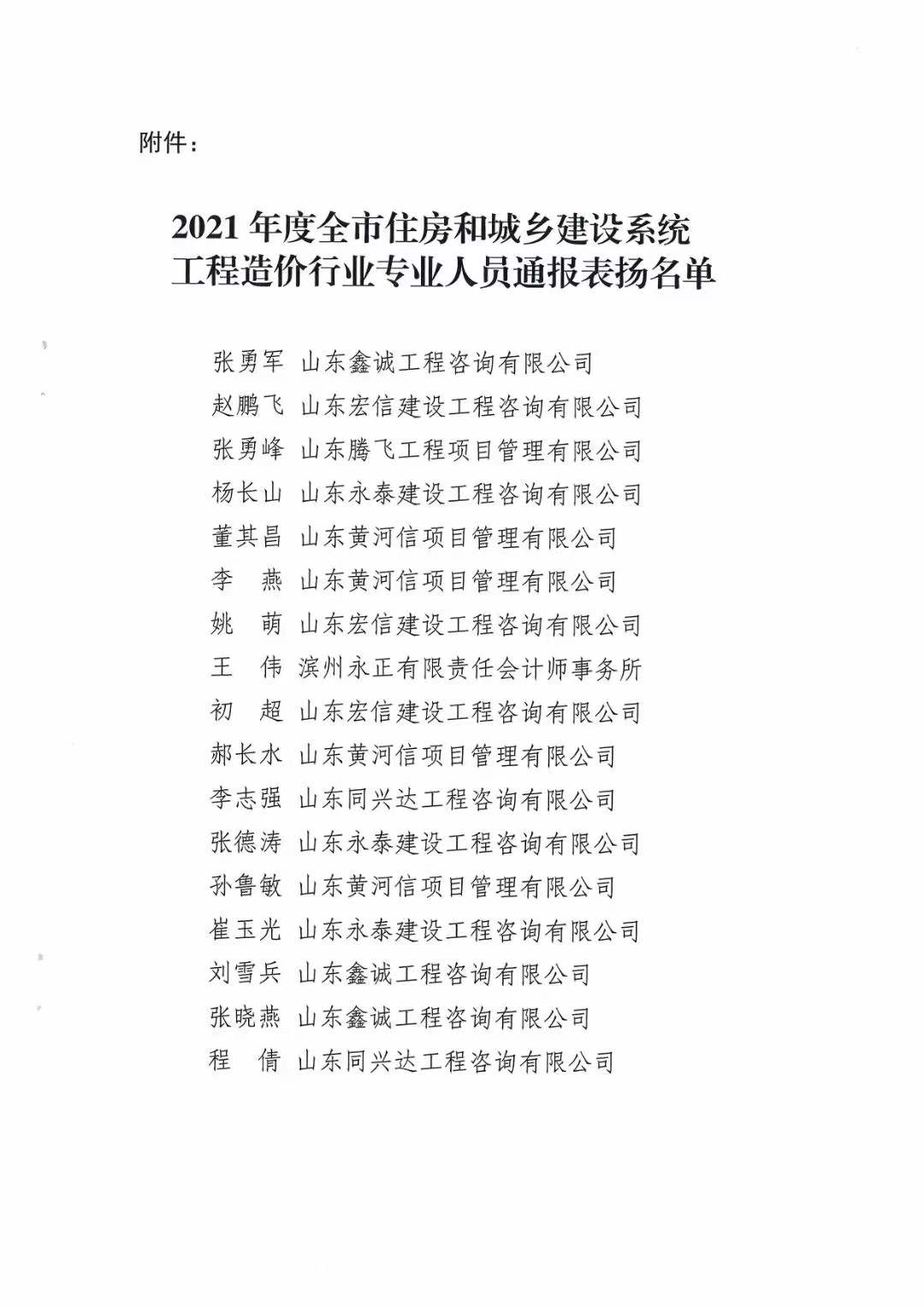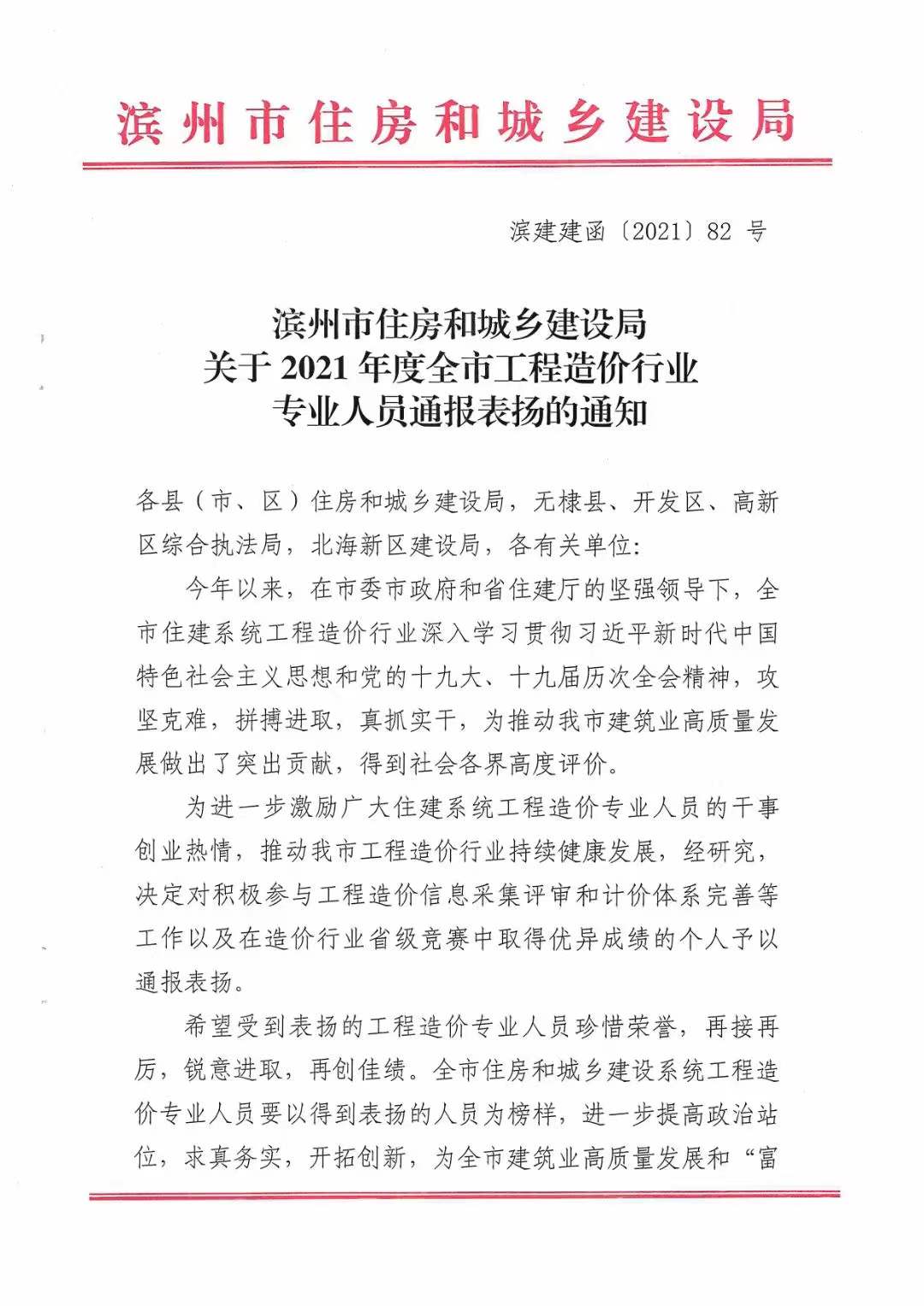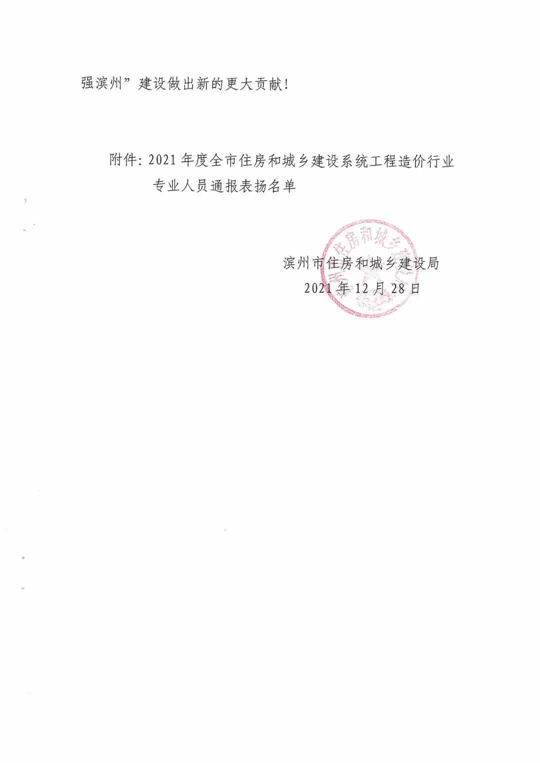 我单位董其昌、李燕、郝长水、孙鲁敏四位同志获滨州市住房和城乡建设局表扬